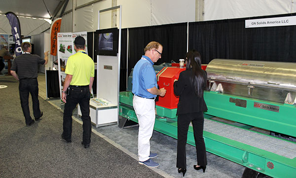 展會(huì)上很多客戶對(duì)我們的22英寸的離心機(jī)表示出了強(qiáng)烈的興趣。我們離心機(jī)的轉(zhuǎn)鼓主要部件由2205雙相不銹鋼離心澆鑄而成,其他部件由316L不銹鋼制作而成。轉(zhuǎn)鼓里的螺旋推進(jìn)器鑲嵌了超過4mm的耐磨合金片,能夠有效提高使用壽命。為了滿足加拿大市場(chǎng)所要求的CSA標(biāo)準(zhǔn),我們展會(huì)離心機(jī)配備了符合CSA防爆標(biāo)準(zhǔn)的電機(jī)(125HP和50HP)以及變頻控制柜。從技術(shù)規(guī)格上來說,冠能的GNLW553-VFD離心機(jī)與市場(chǎng)上使用廣的Alfa Laval Lynx 40相當(dāng),并且已經(jīng)在石油天然氣鉆井固控系統(tǒng)、鉆井廢棄物處理以及隧道盾構(gòu)和淤泥處理等行業(yè)得到了廣泛的應(yīng)用。