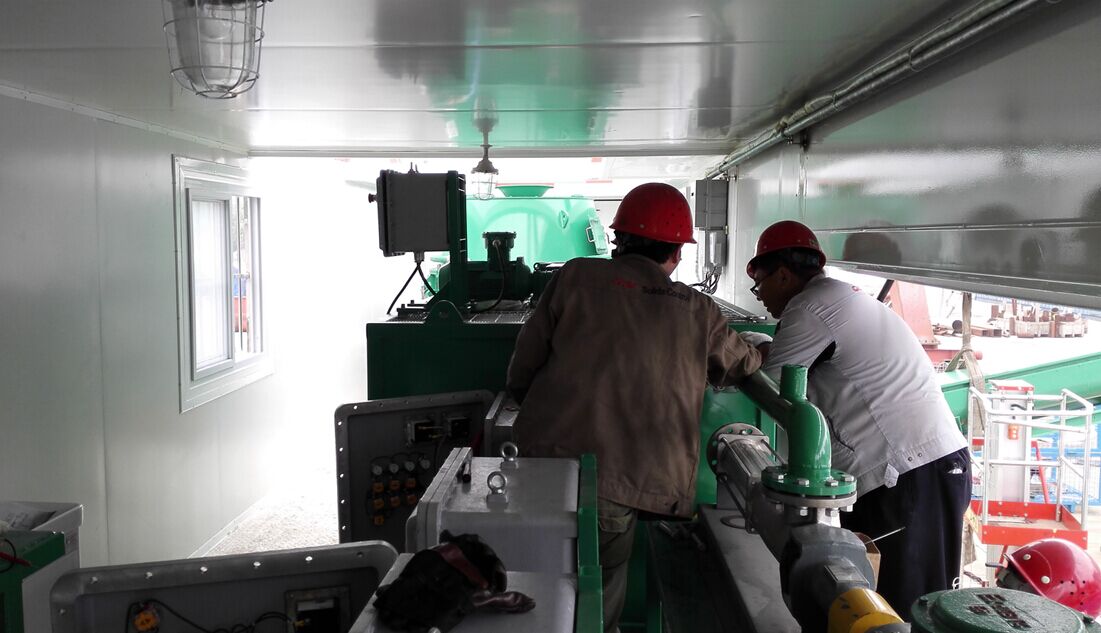 - 兩臺臥螺離心機(jī),采用一臺定速、一臺變頻,這兩臺泥漿離心機(jī)的布局設(shè)計合理緊湊,用于處理鉆屑甩干機(jī)處理后的液相部分,處理后的液相部分達(dá)到客戶的的處理要求。